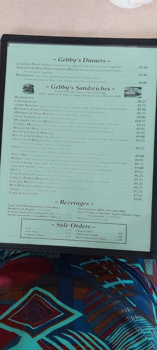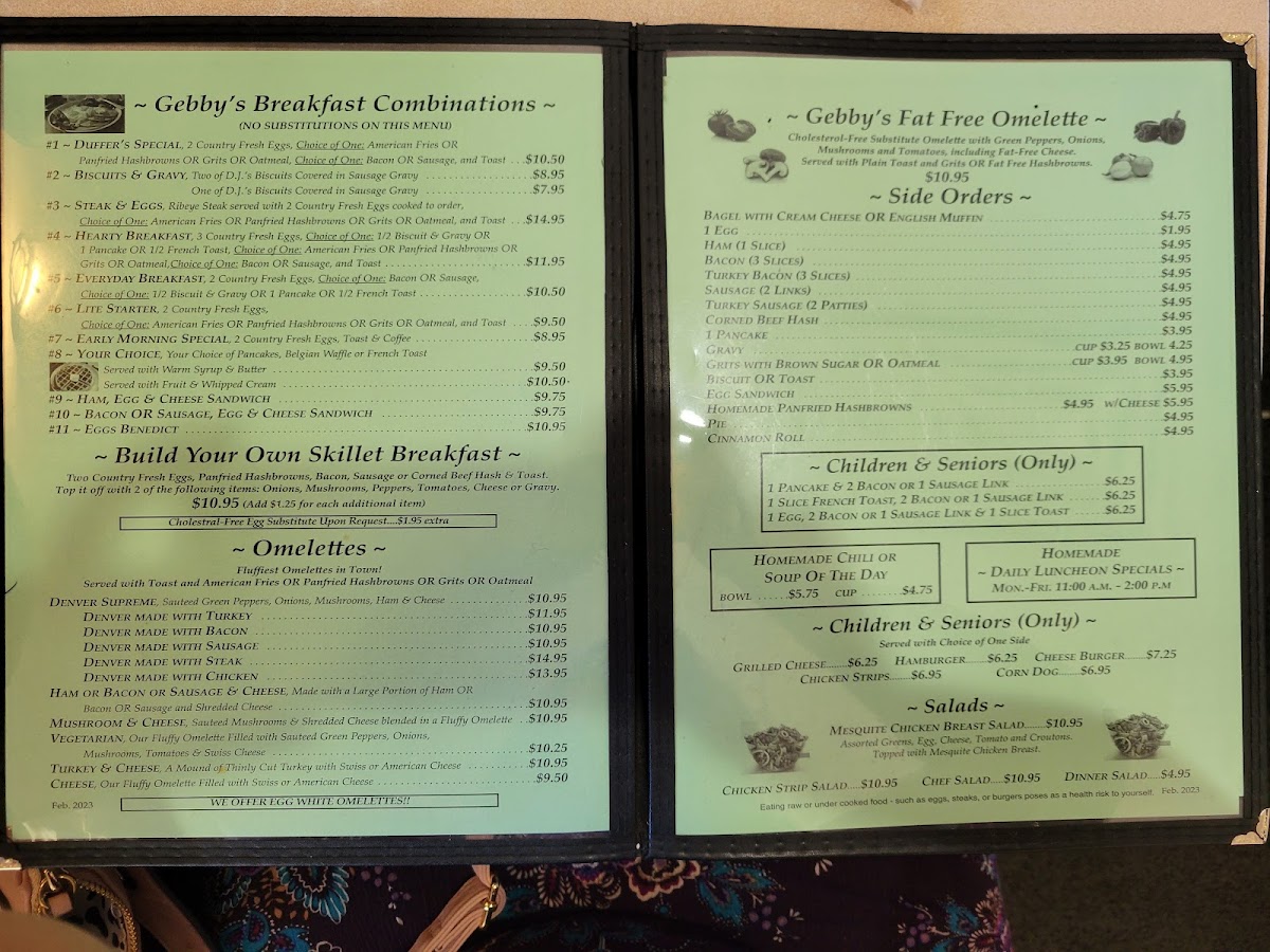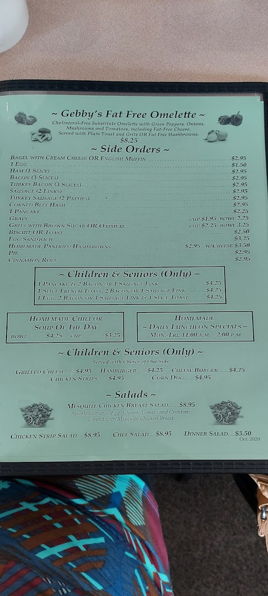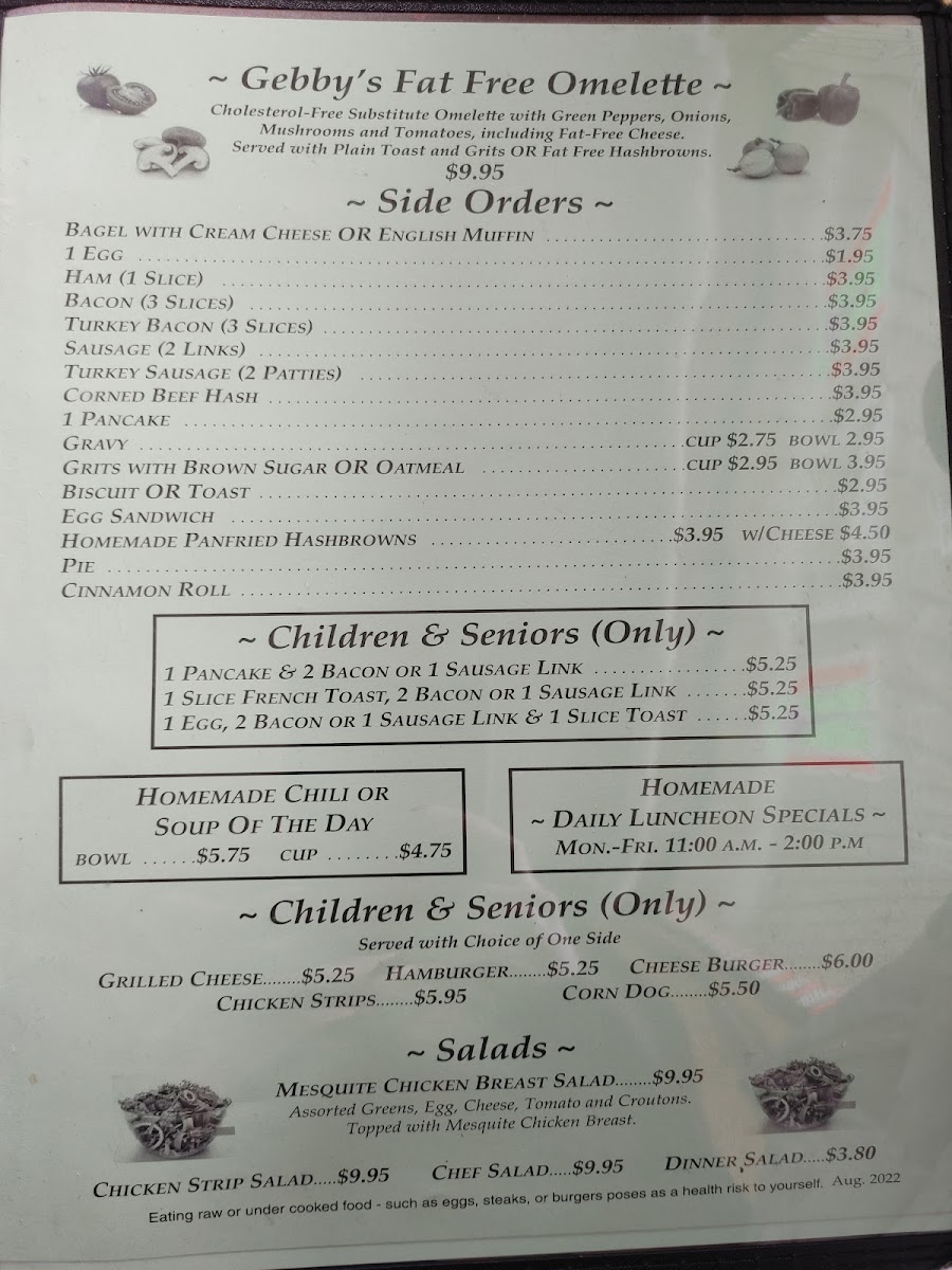 Choose a side: Fries, Salad, Cottage Cheese, Cup of Soup, Chili.